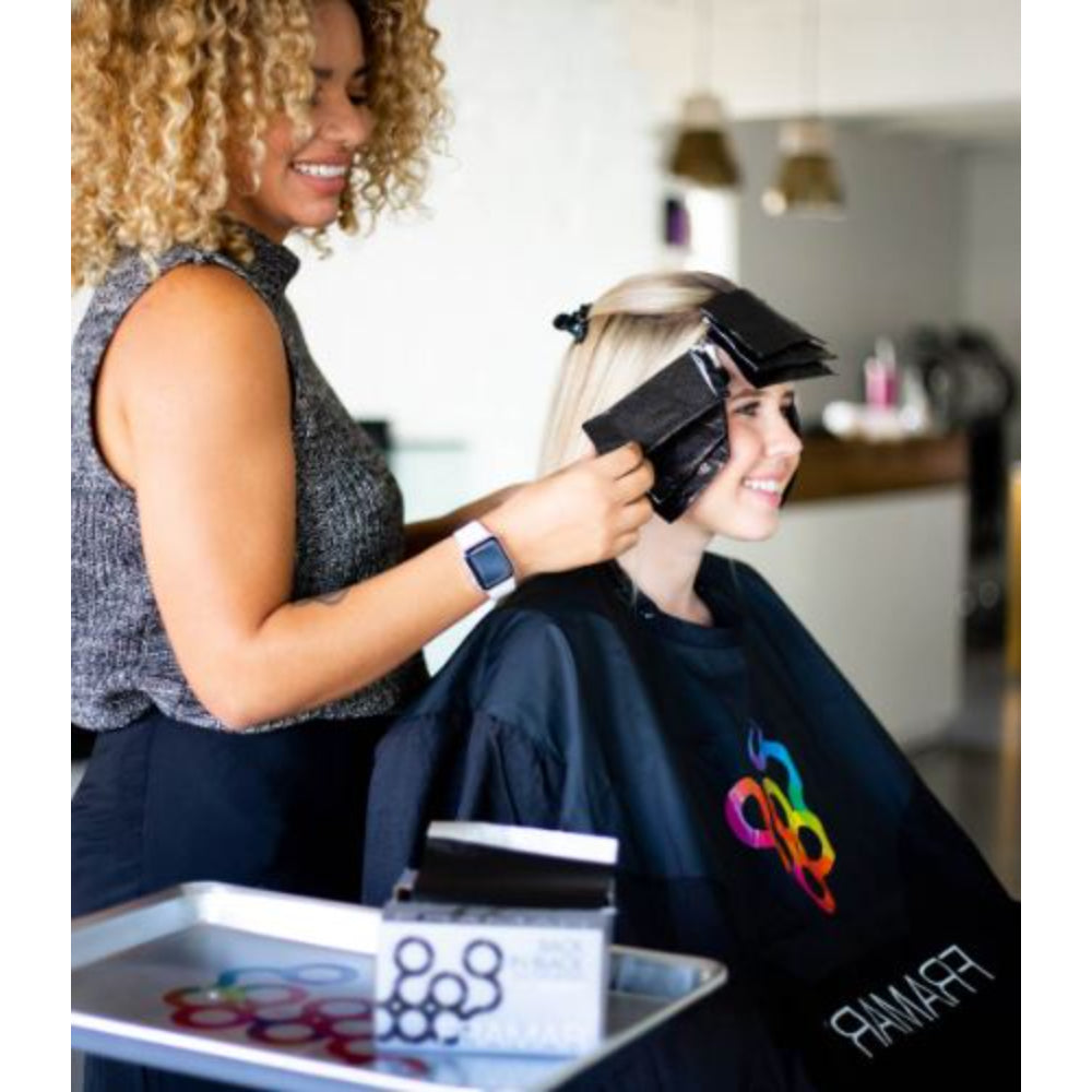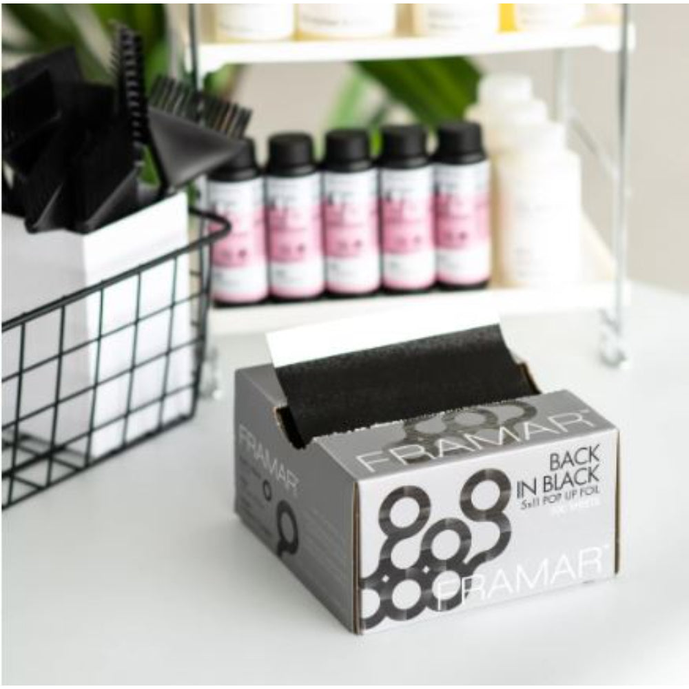 Sleek, simple, and efficient — the Framar Black Pop Up Foil keeps your color services fast and professional. These 5x11" pre-cut sheets come in a convenient pop-up box that dispenses one sheet at a time, keeping your station organized and clean.