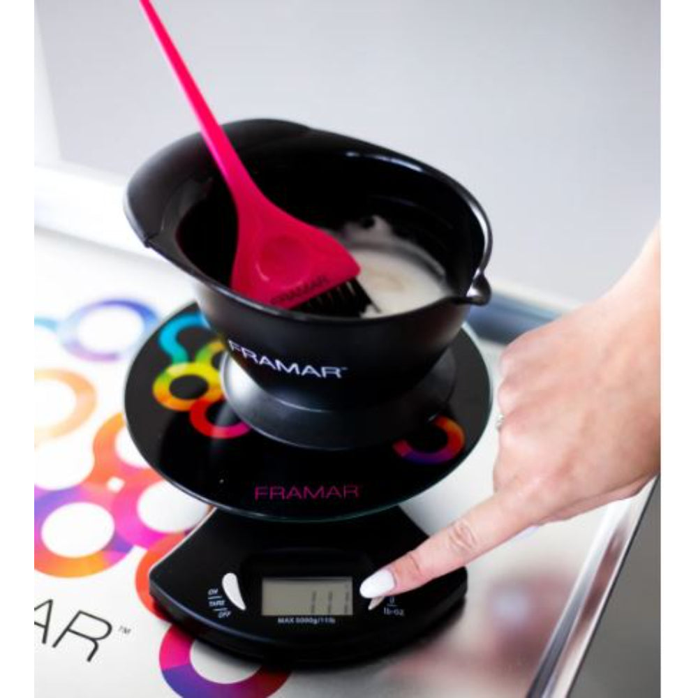 The Framar Digital Color Scale is a must-have tool for stylists who want precision and consistency in every color service. With its sleek design and easy-to-read digital display, this scale ensures perfect ratios of color and developer, helping you achieve flawless results every time.