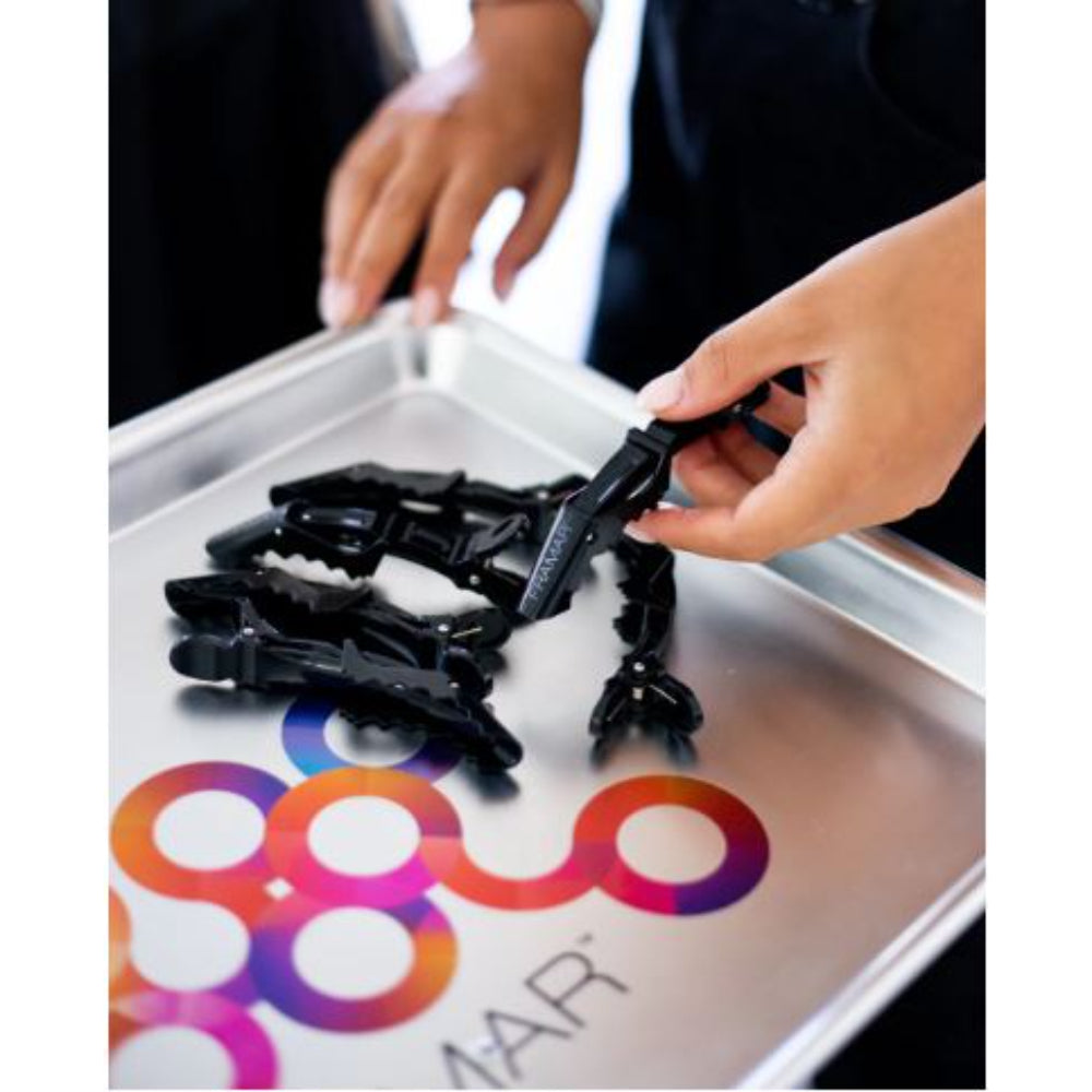 The Framar Gator Grip Clips in Black are essential salon tools for secure and reliable sectioning. Designed with a strong spring mechanism and alligator-style grip, these clips hold hair firmly in place without slipping or snagging, making them perfect for coloring, cutting, and styling. Their sleek black finish offers a professional look that belongs in every stylist’s toolkit.