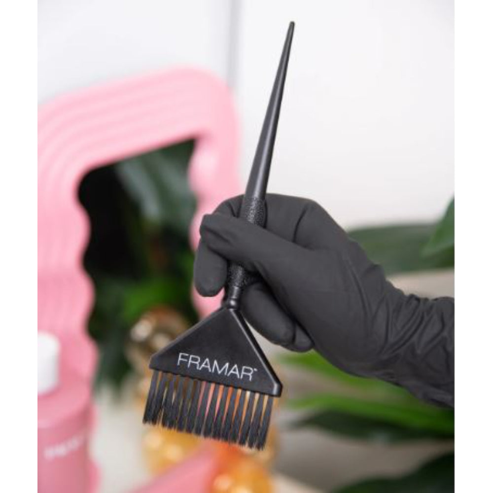 The Framar Reusable Black Latex Gloves are heavy-duty, salon-grade gloves designed for repeated use without compromising comfort or performance. Made from durable latex with a snug, form-fitting design, these gloves provide superior protection against chemicals, color, and salon products while maintaining excellent flexibility and tactile control. Easy to wash and reuse, they are both eco-friendly and cost-effective, making them a must-have for professionals.