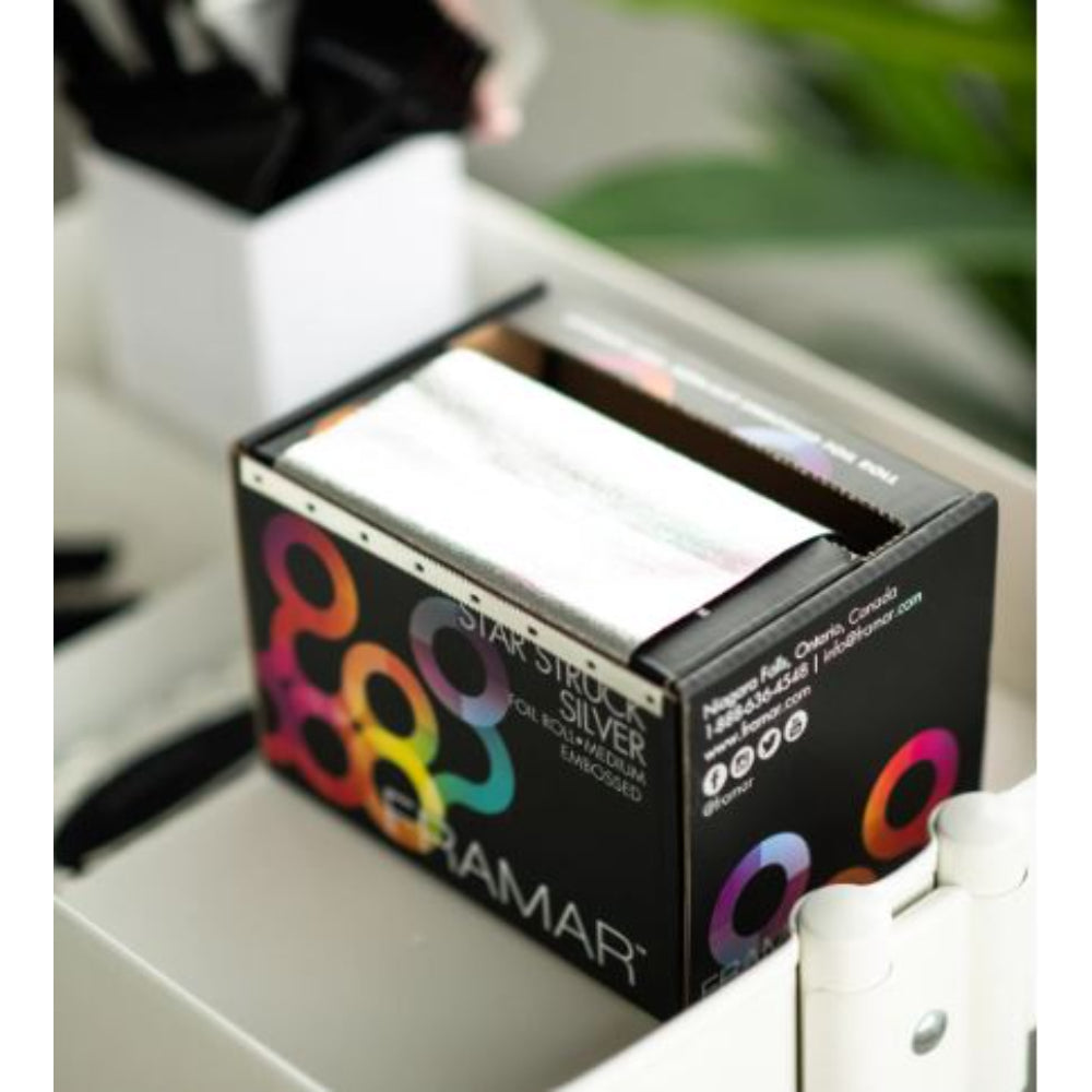 A salon classic, the Framar Star Struck Silver Embossed Roll delivers durability, grip, and flexibility in one sleek package. With 320 ft of professional-grade foil, you can cut exactly the length you need for any coloring service while the embossed texture ensures foils stay in place.