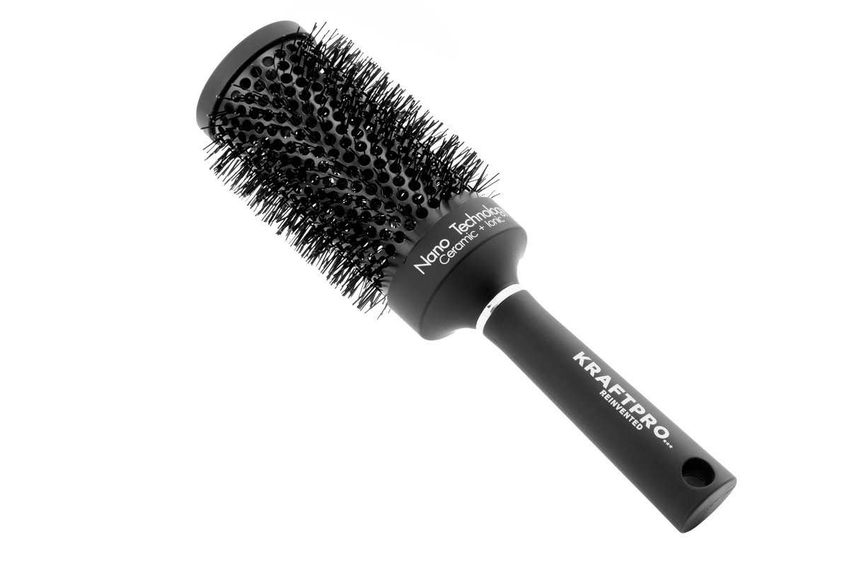 The Kraft Pro Black Round Brush is a professional styling essential, crafted with precision to deliver smooth, frizz-free results. Featuring a sleek ergonomic design and a black matte finish handle for enhanced grip, this brush ensures comfort and control during every styling session.