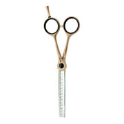 The Kraft Pro Chromline Thinning Scissor is crafted from premium Japanese steel and enhanced with a sleek metallic coating for a distinctive and professional look. Designed specifically for texturizing, this scissor features specialized thinning teeth that allow for seamless blending and precise finishing, making it an essential tool in any stylist’s collection.