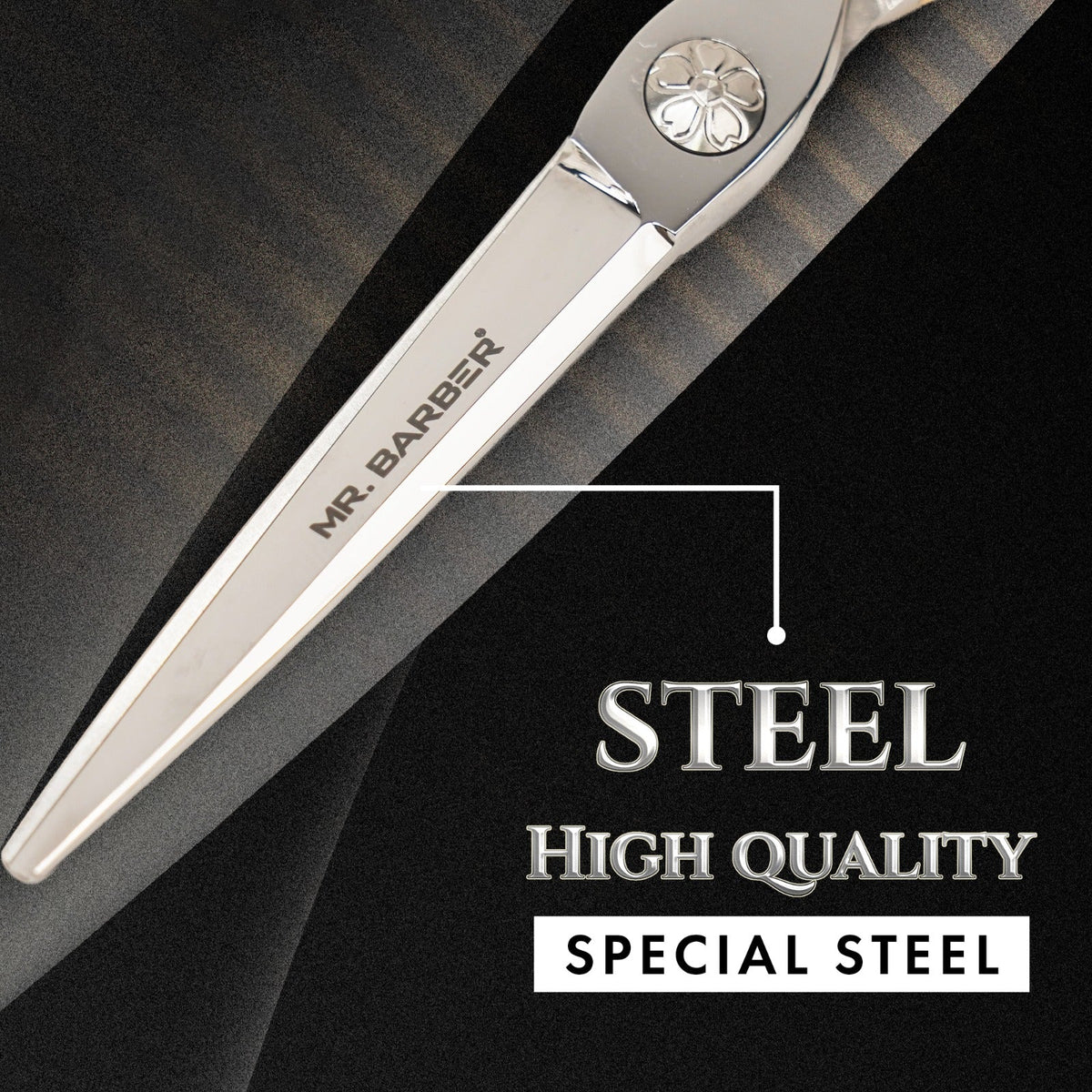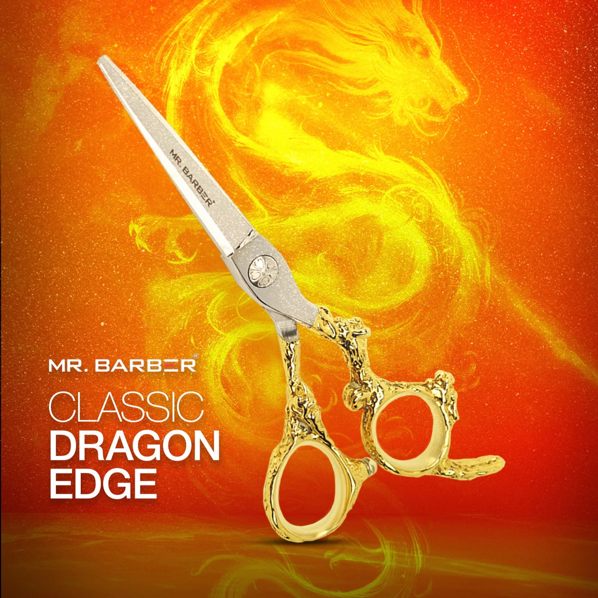 Add elegance and precision to your styling with the Mr. Barber Classic Dragon Edge Hair Cutting Scissor. Measuring 5.5 inches, this premium scissor is forged from high-quality special steel to ensure durability, sharpness, and smooth cutting performance. The pivot screw system allows perfect tension adjustment for flawless cutting control, while the striking golden dragon handle delivers both ergonomic comfort and an artistic finish. Designed for professionals and enthusiasts who value performance and craftsmanship in one tool.