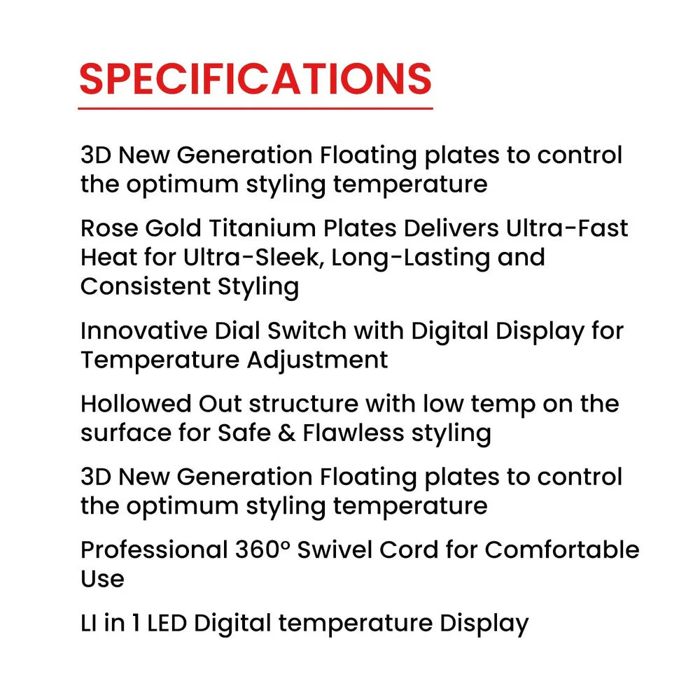 With its sleek design and durable build, the Supreme Pro is perfect for creating straight, smooth looks or versatile styles. Ideal for both salon professionals and home users who demand precision, shine, and long-lasting results.