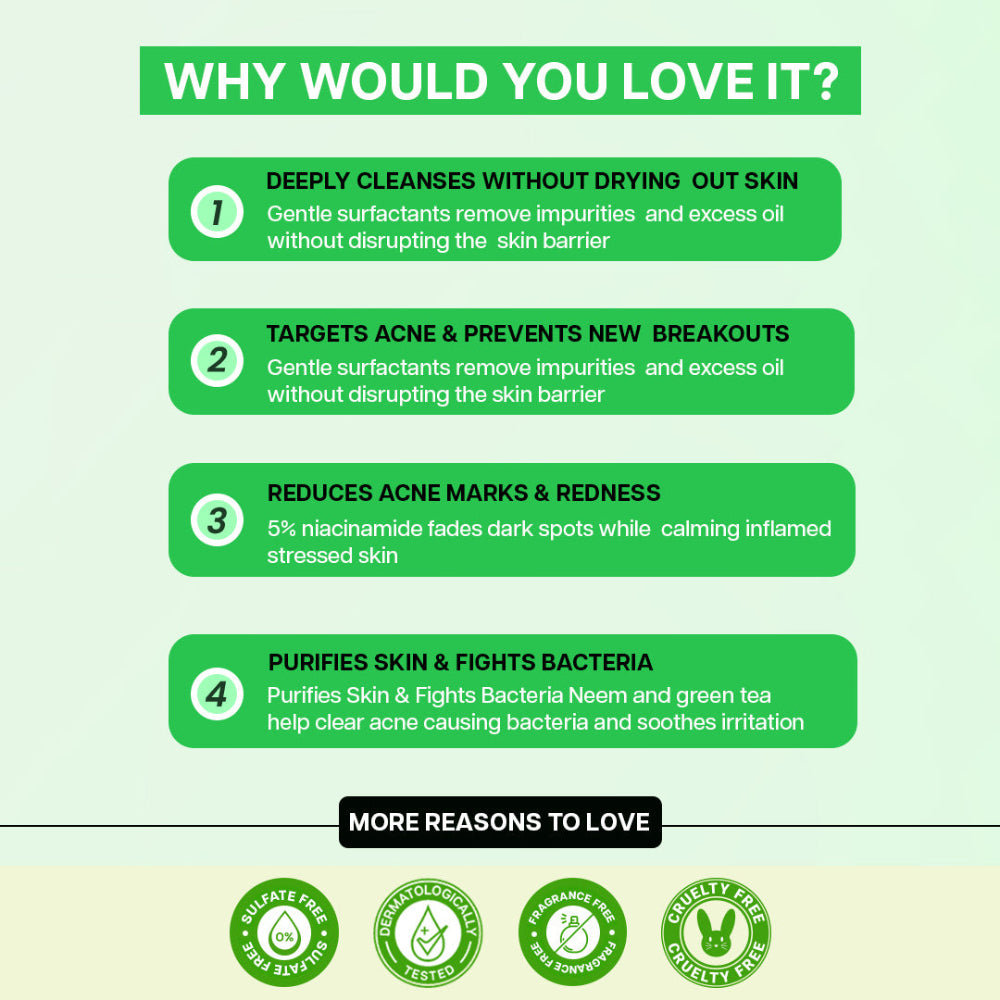 Reveal clearer, fresher, and healthier-looking skin with the Jovees Derma Green Tea & 2% Salicylic Acid Acne Control Cleanser.